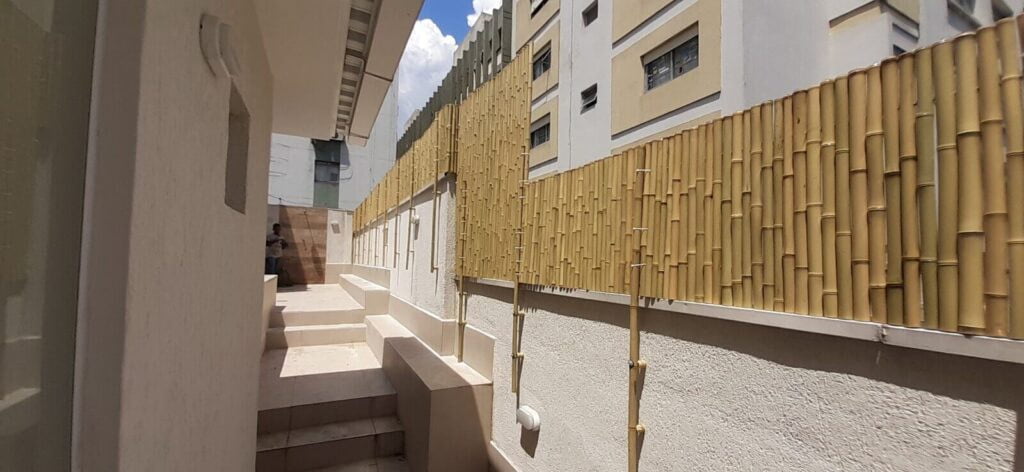 Outro ponto importante é a facilidade de instalação. Diferente de estruturas pesadas, a cerca privativa feita de bambu pode ser instalada em muros, grades, alambrados ou até diretamente no solo, sem grandes obras. Essa flexibilidade reduz custos e permite adaptações conforme a necessidade do espaço.